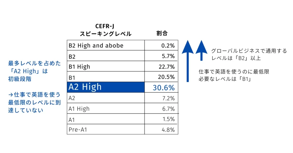 PROGOS受験者のうち、日本人のスピーキング力の最多レベルは初級段階の「A2 High」だそうです。