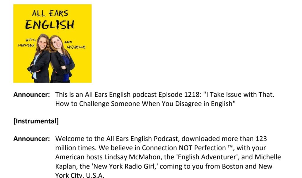 「ALL EARS ENGLISH」のトランスクリプトは、