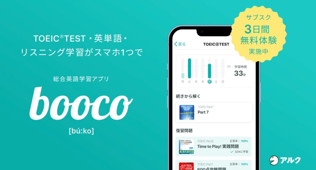 まず、一夜漬けの勉強にも関わらず800点超えられたのは直前に出会った神アプリ『booco』のおかげだったと思います。